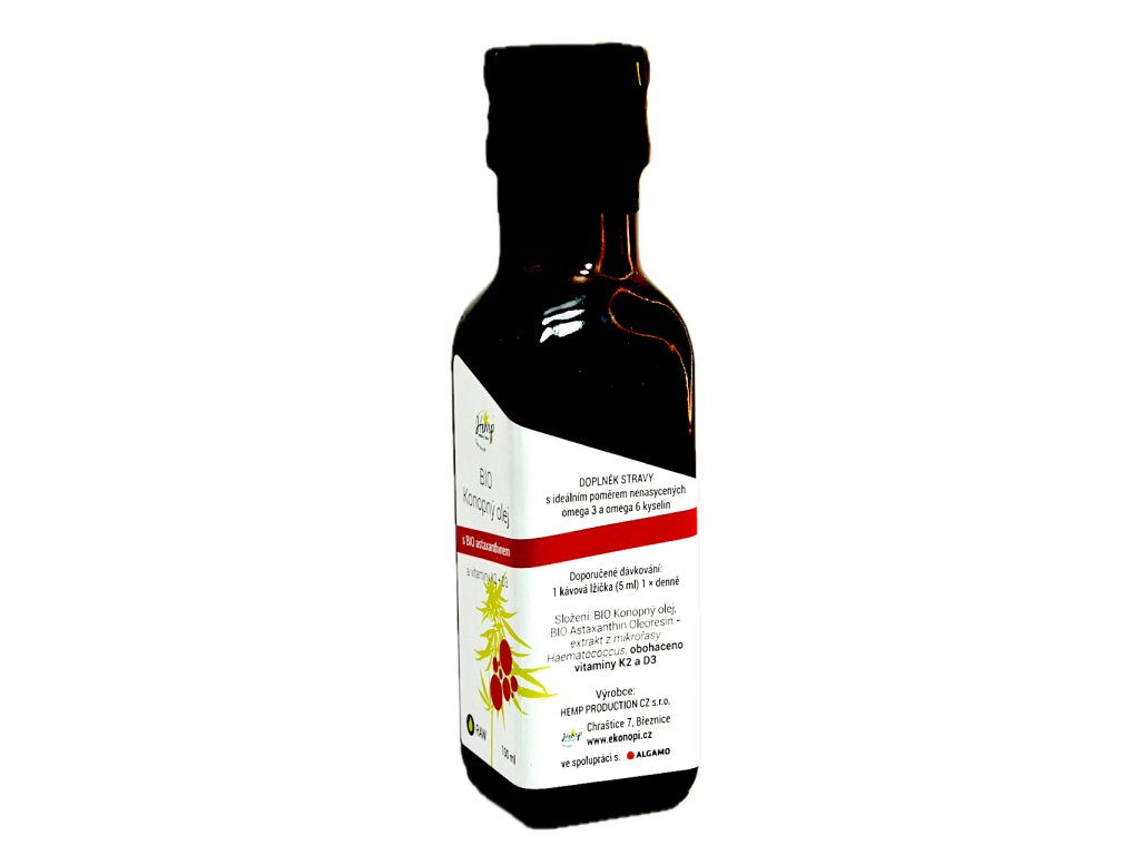 BIO Konopný olej s BIO Astaxanthinem a vitamíny K2 a D3