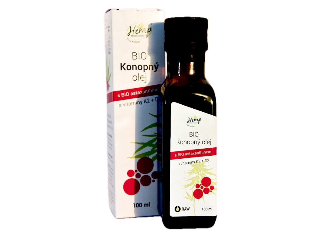 BIO Konopný olej s BIO astaxanthinem a vitaminy K2 + D3