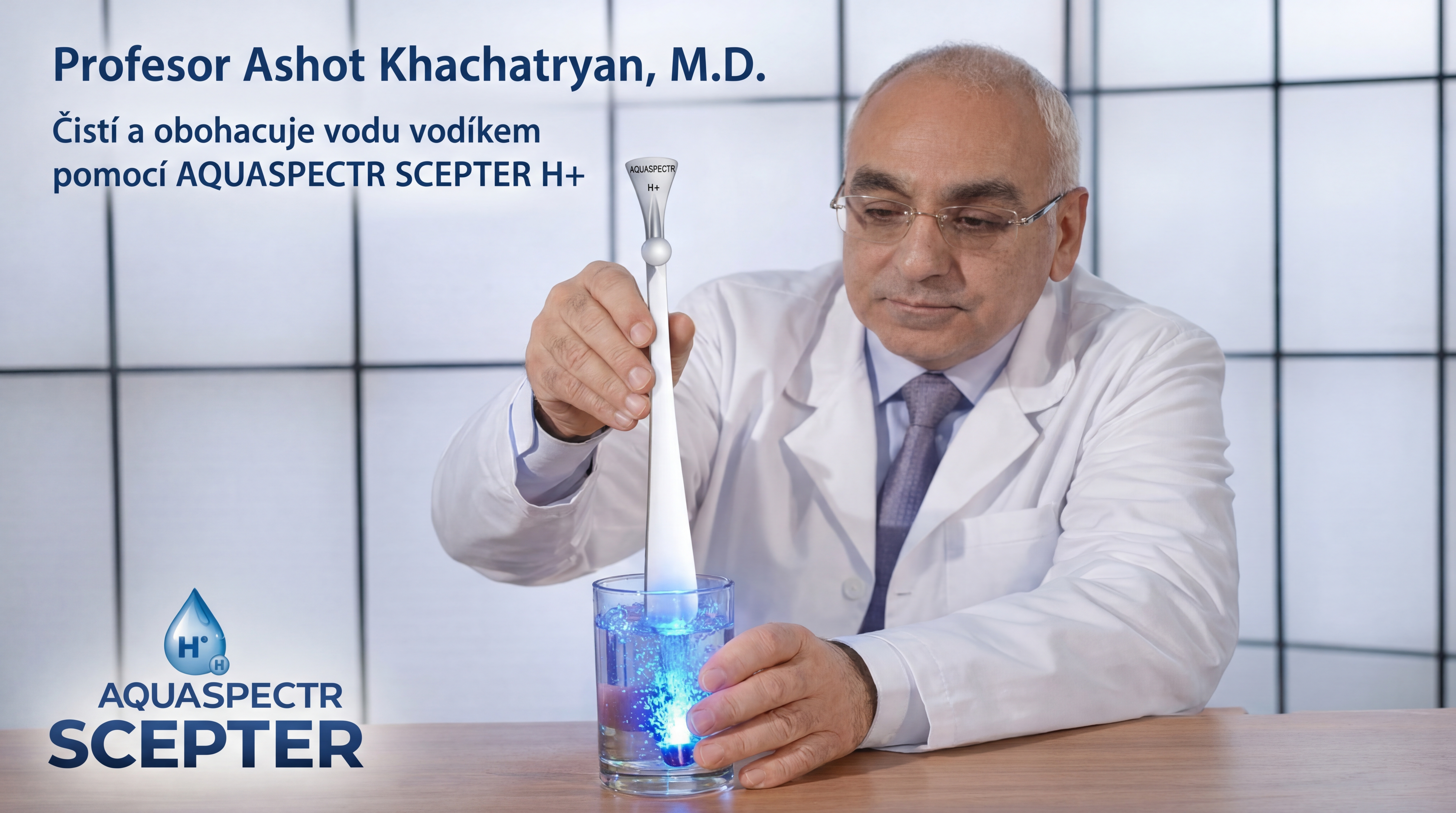 Objevte jedinečný výrobek AQUASPECTR SCEPTER – aktivátor vody a nápojů, vyvinutý profesorem Ashotem Khachatryanem, M.D., čestným profesorem Oxfordské akademické unie, zasloužilým vynálezcem, akademikem Akademie Medicínsko Technických Věd Ruské federace, European Academy of Natural Sciences a New York Academy of Sciences.