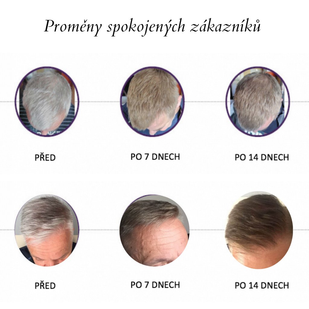 - Rychlé a viditelné výsledky: Už během prvních 7–14 dní uvidíte změnu v barvě šedivých vlasů, plný efekt se dostaví zhruba za 21 dní.