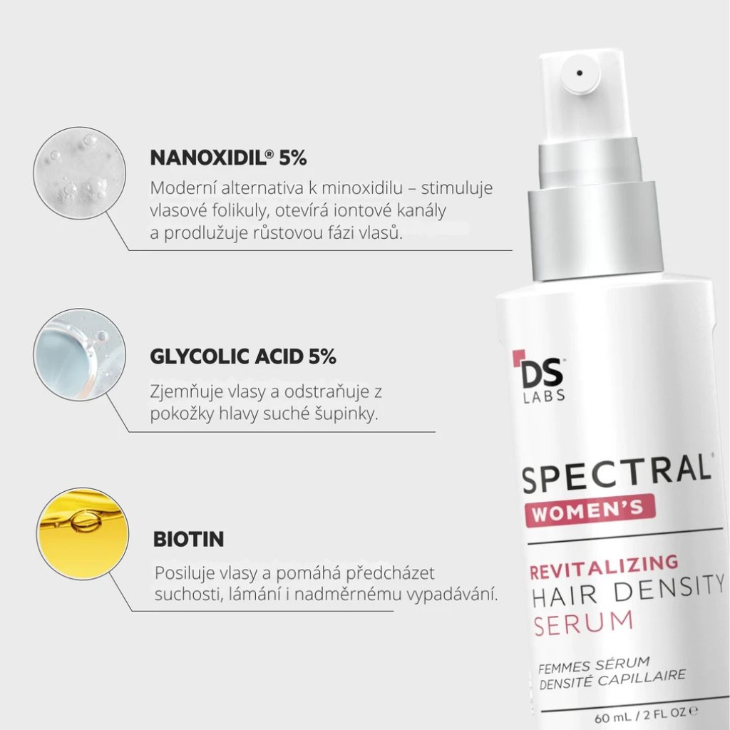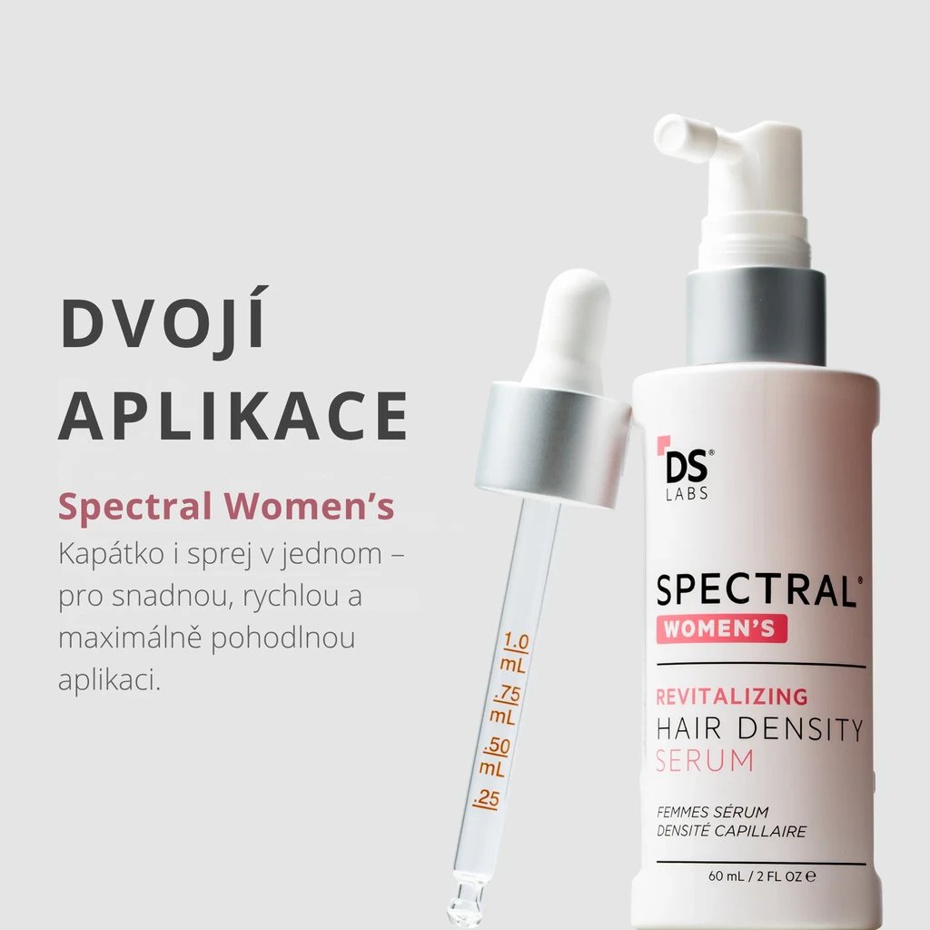 Spectral Women’s je vysoce účinné sérum vyvinuté speciálně pro ženy, které trápí jemné, řídnoucí či lámavé vlasy. Díky omlazující receptuře s Nanoxidilem působí proti vypadávání vlasů, podporuje růst nových a navrací účesu zdravý objem i mladistvý vzhled. Ideální řešení po porodu, během hormonálních změn i v období menopauzy.
